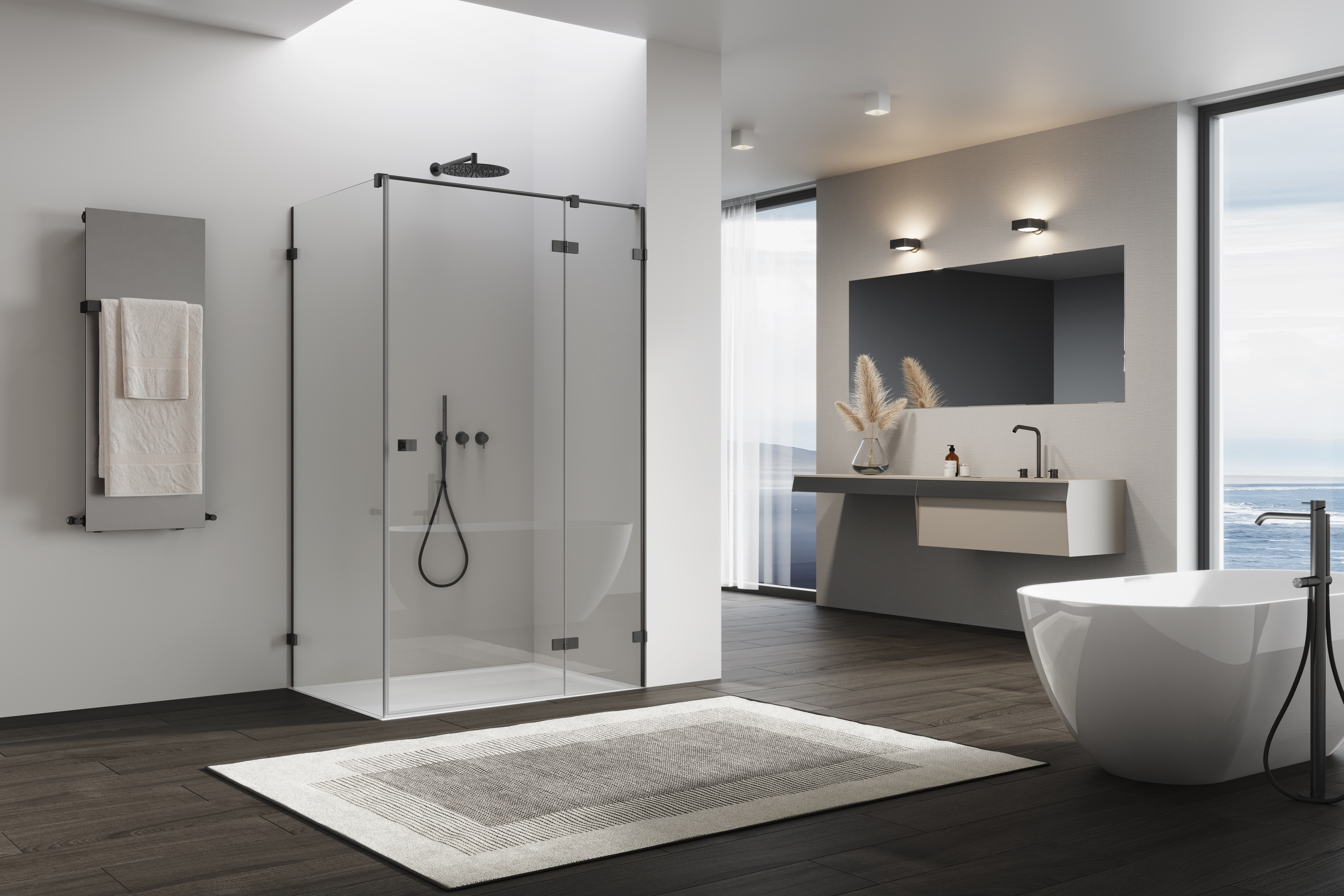 ANNEA AN13W+ANTW1 - Jednokřídlé dveře s pevnou stěnou v rovině + Boční stěna