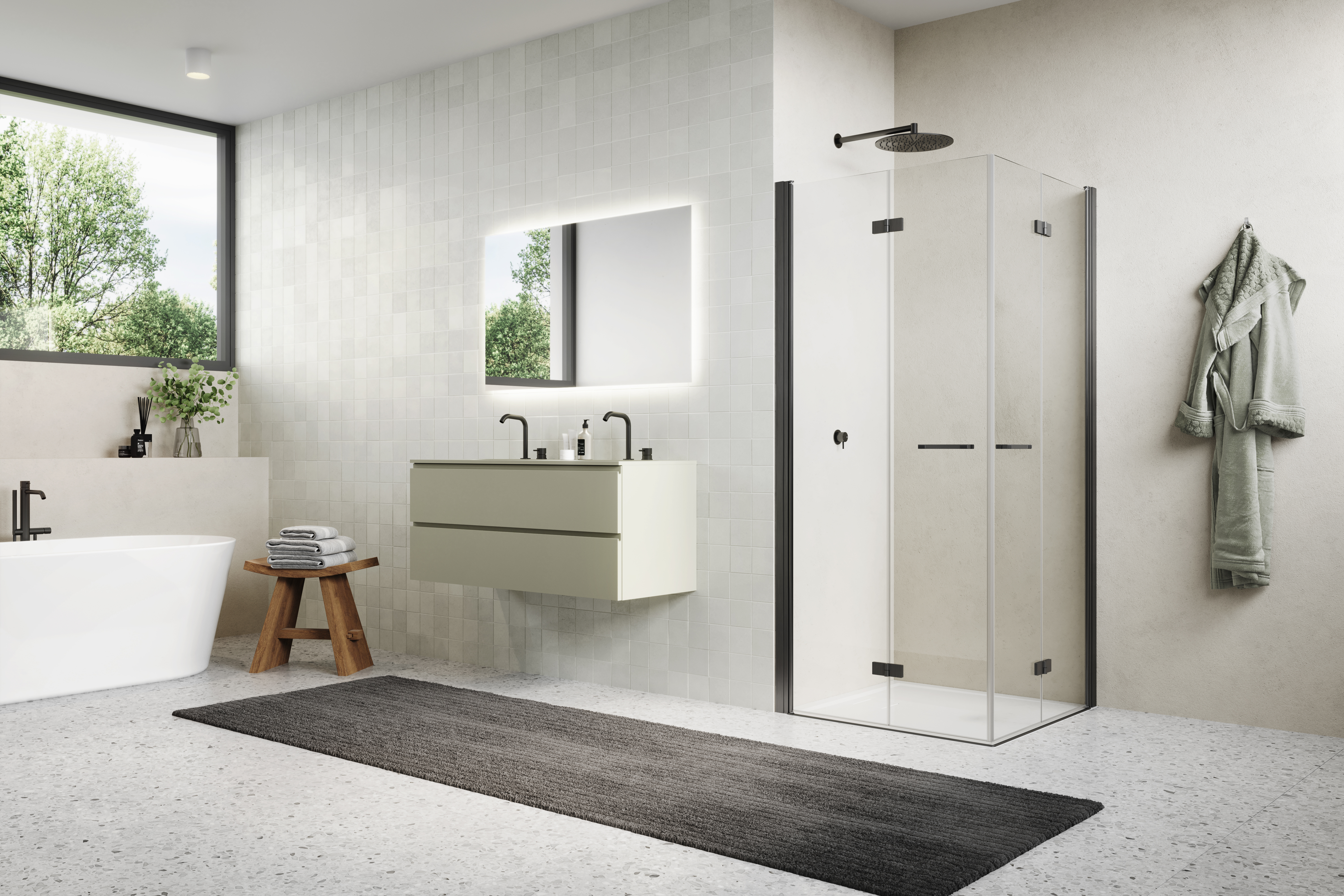 SOLINO SOLF1 G+D - Rohový vstup s dvoudílnými skládacími dveřmi