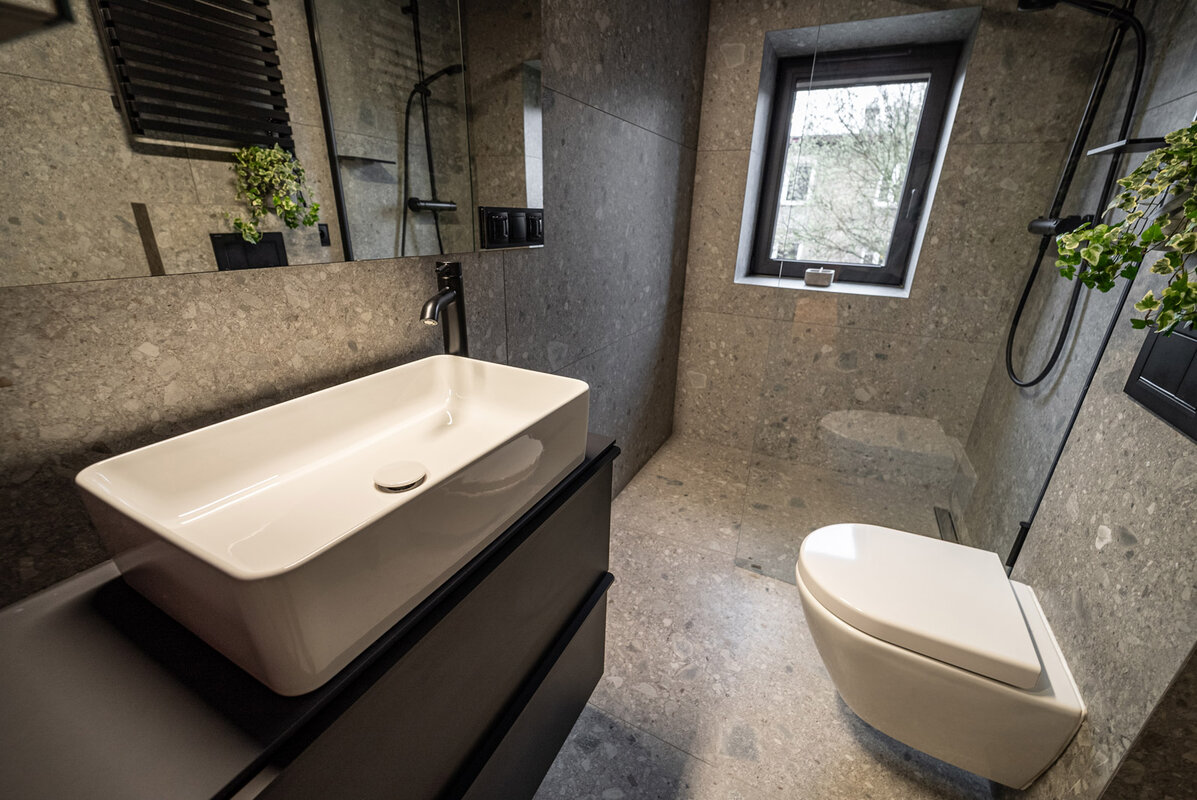 Despite appearances, the industrial style can be an ideal choice for smaller spaces. By following basic principles, a small loft bathroom can be both elegant and functional. The space can be visually enlarged with lighter colors. Stronger and darker colors, such as black, are better used for details and accessories, but they should be kept to a minimum. There should, however, be room for vertical mirrors and light furniture like hanging cabinets. Due to the limited space, a loft shower is a better option than a bathtub. A well-designed industrial bathroom in a block apartment will look interesting while ensuring ease of use.