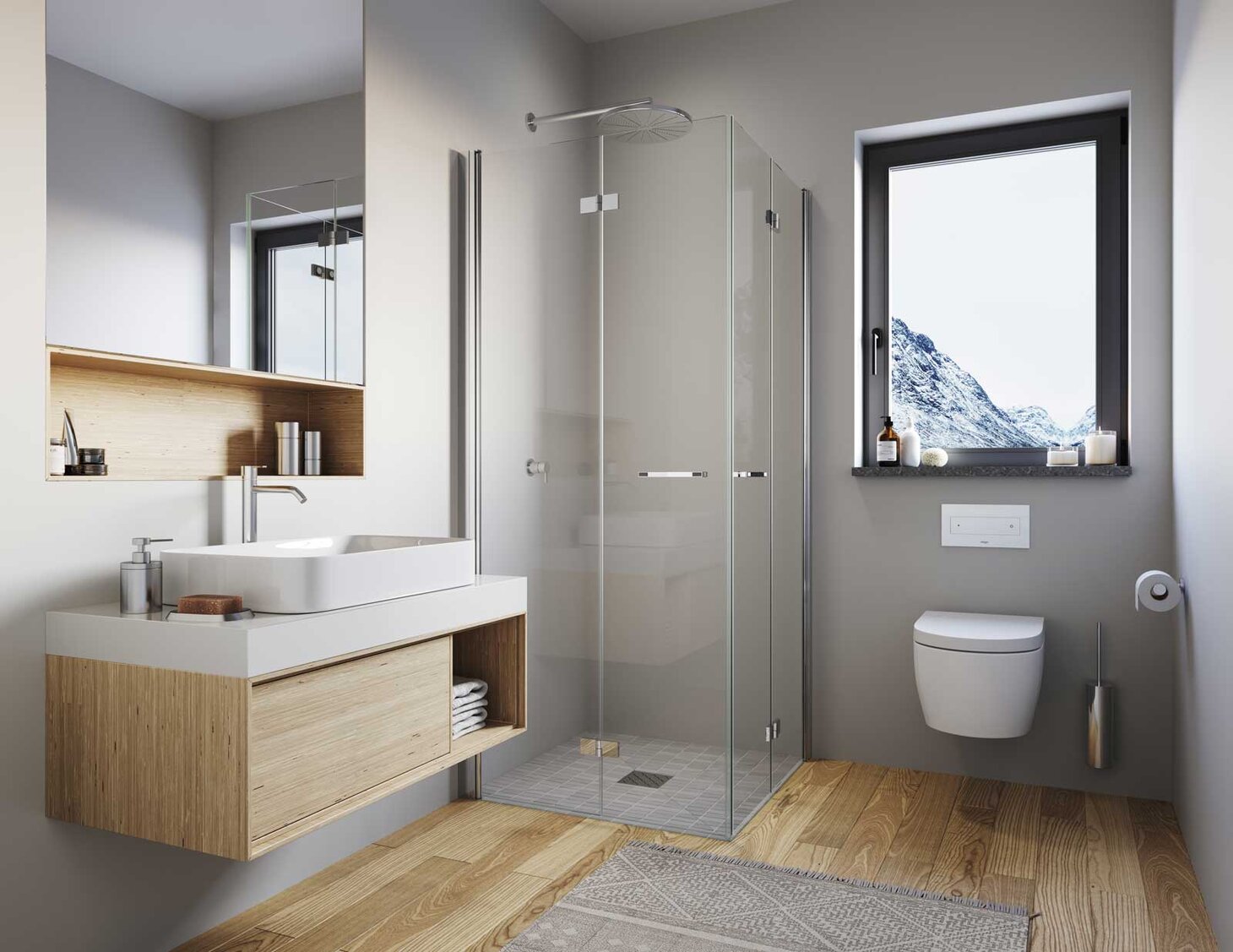 The shower cabin should not only be functional but also aesthetically pleasing. With so many anti-slip shower tiles available, you can experiment with various combinations and color schemes. A great idea for the shower floor is to use mosaic tiles. They’re great for adding color contrasts. If the residents want to warm up the interior, wood-effect tiles for the shower floor are ideal. Additionally, large-format tiles are popular and are especially suitable for modern and industrial interiors. Unusual tile shapes, like hexagons or fish scales, are also interesting. If the bathroom features darker colors, white tiles in the shower can help brighten the space.