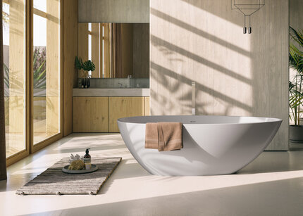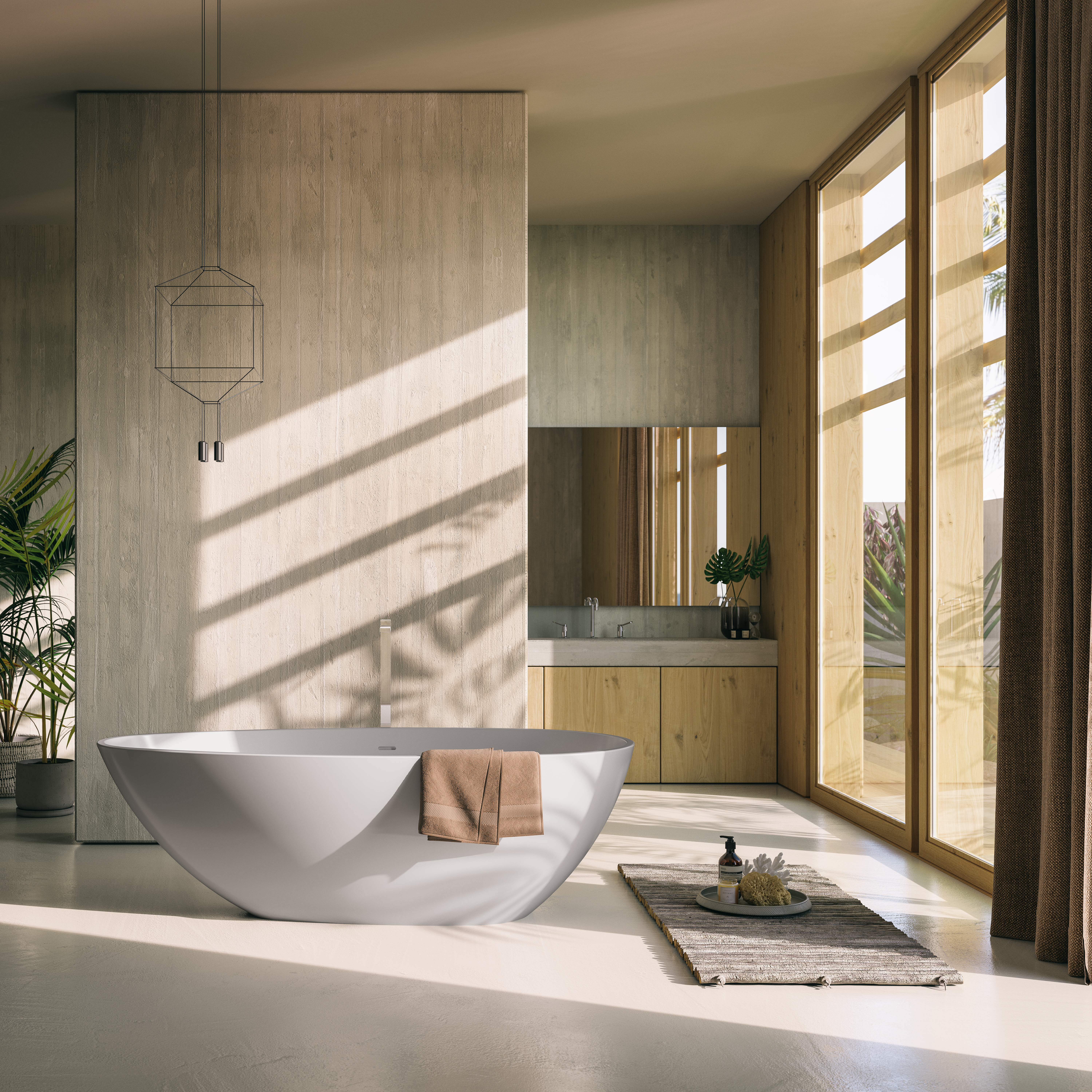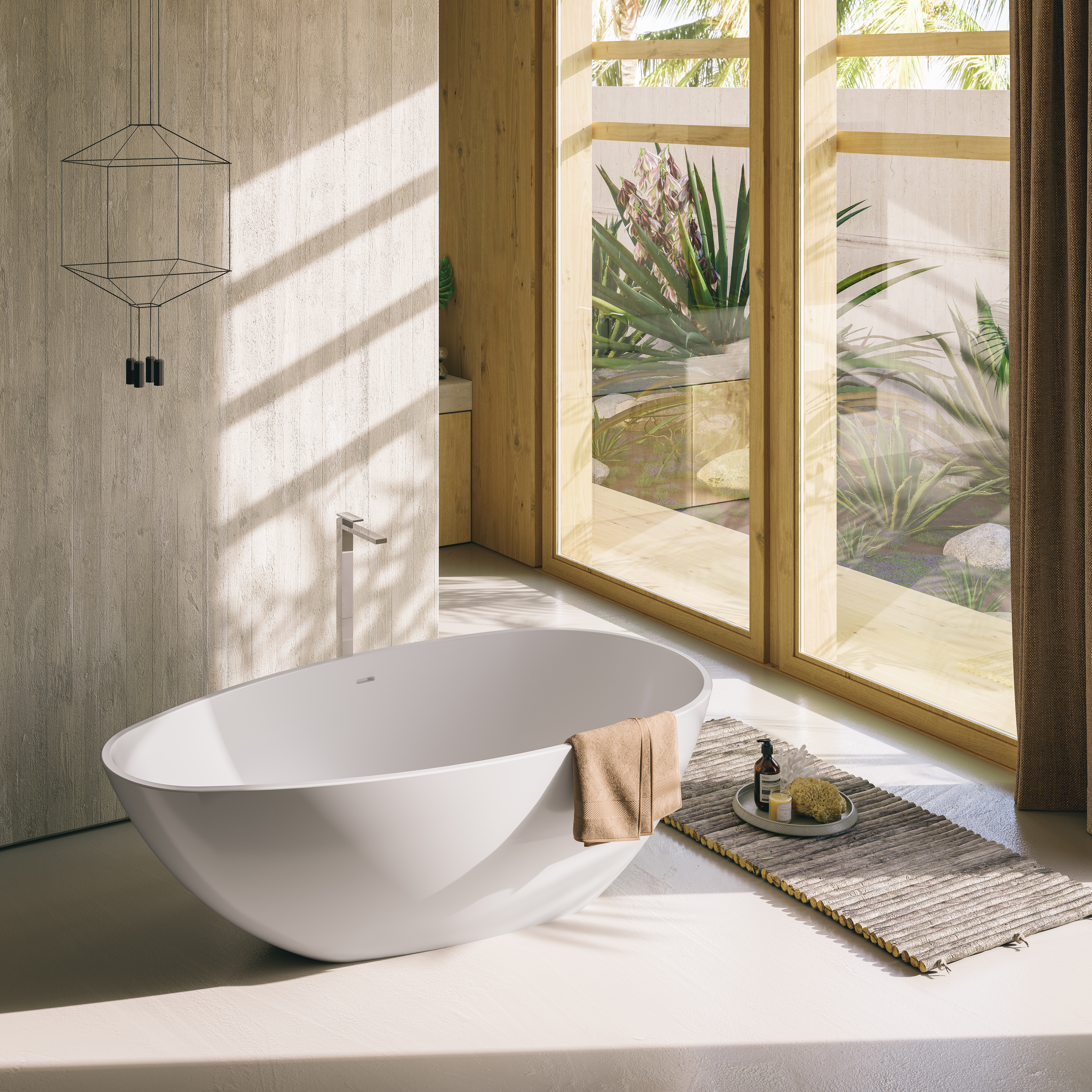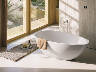 Thanks to its particular spoon shape, this bathtub is a unique piece of furniture with compact dimensions.