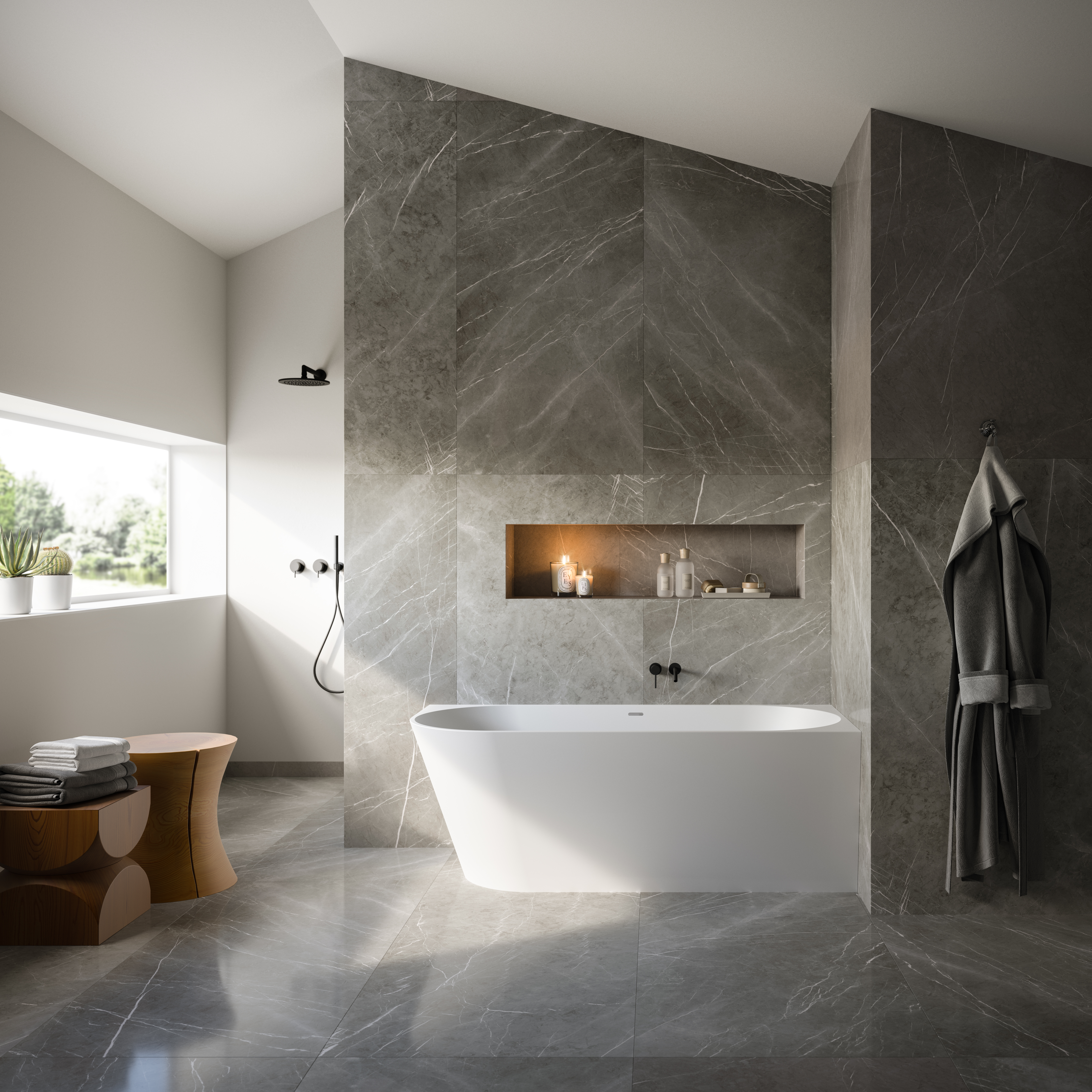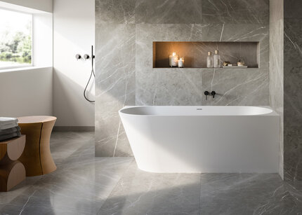 For those who, even in a small space, do not want to give up having an aesthetic, contemporary bathtub with an opaque and silky finish.