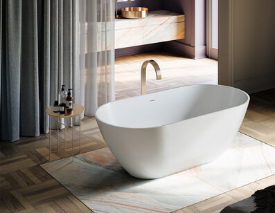 Available in two sizes, it has a leading role in the bathroom: its oval shape makes it a timeless style icon.