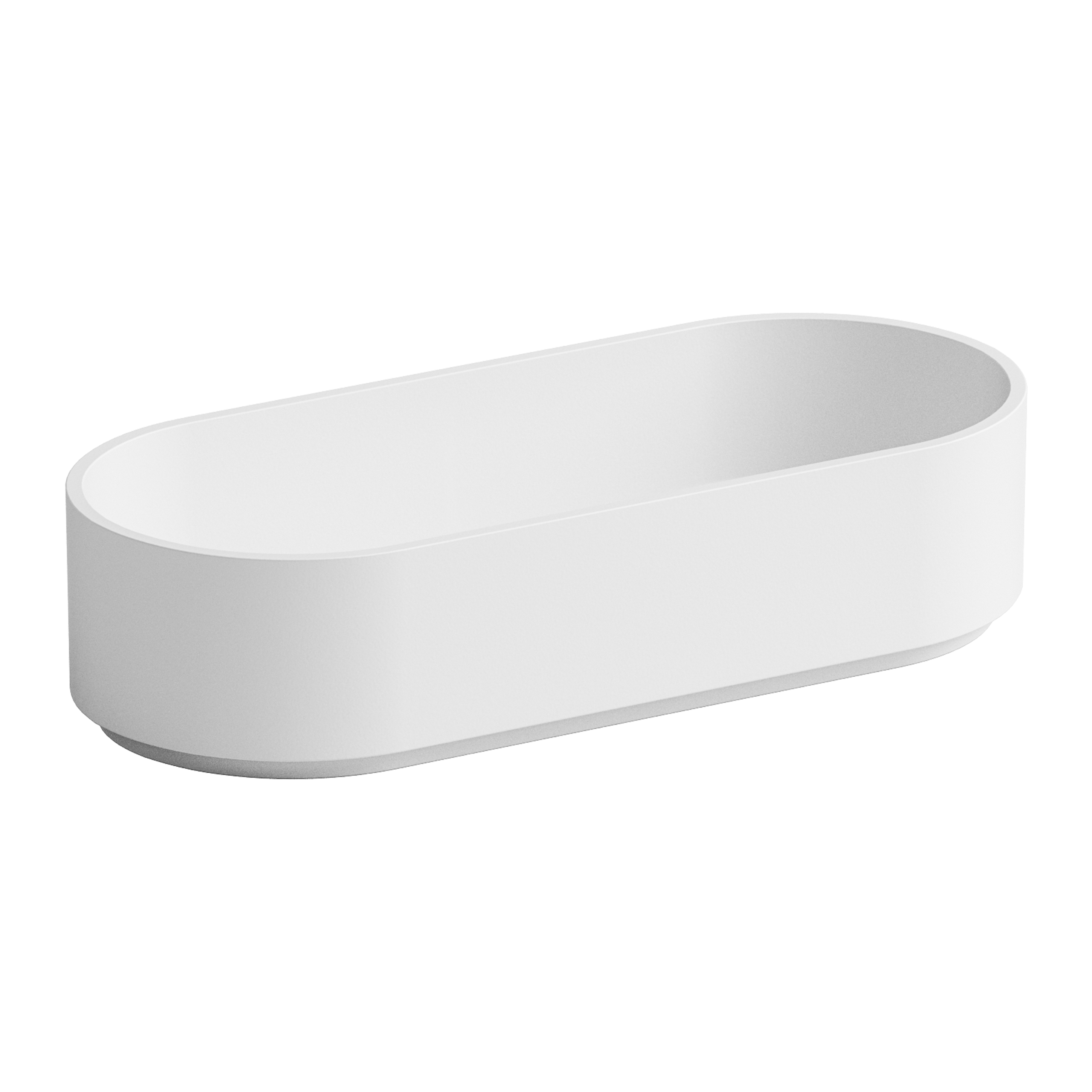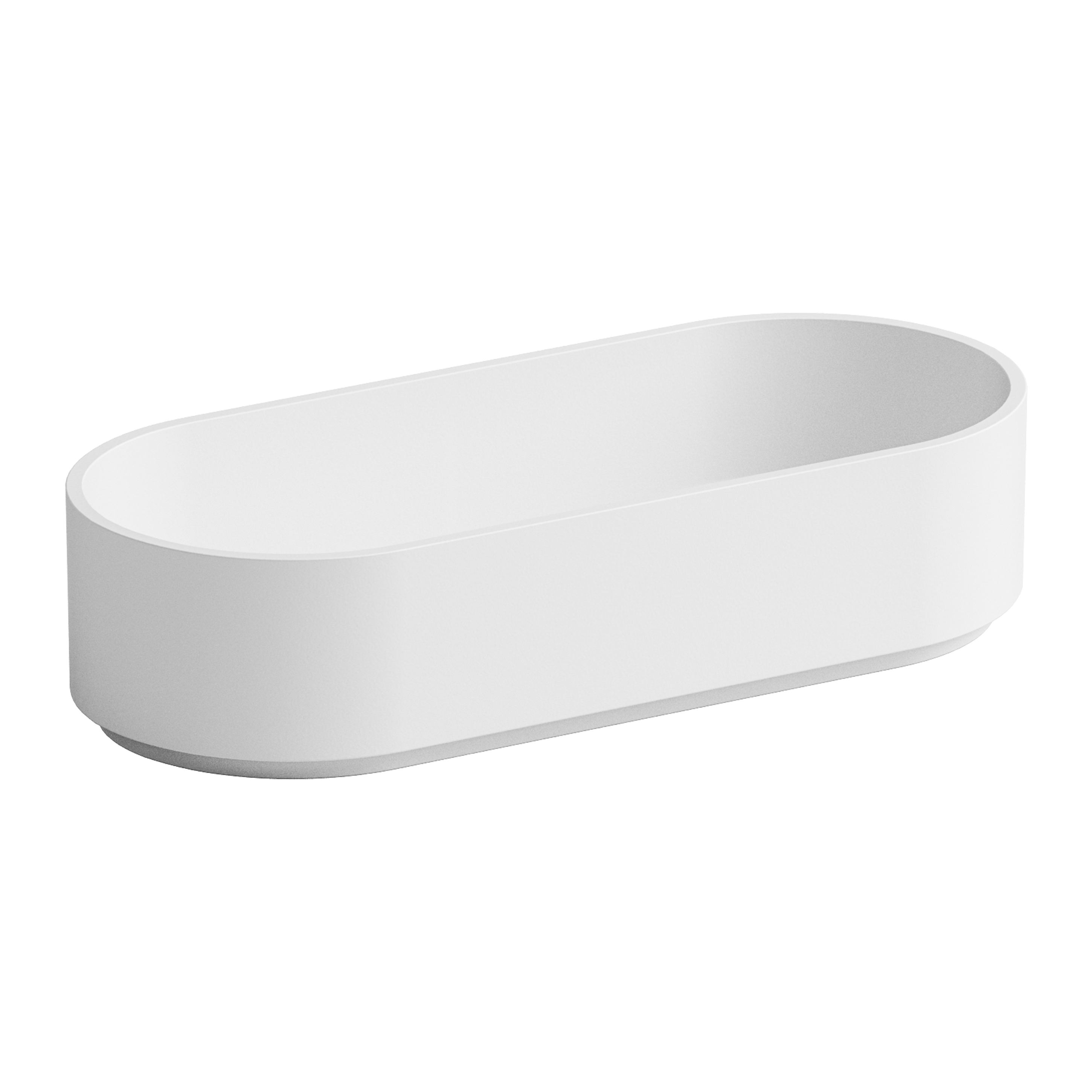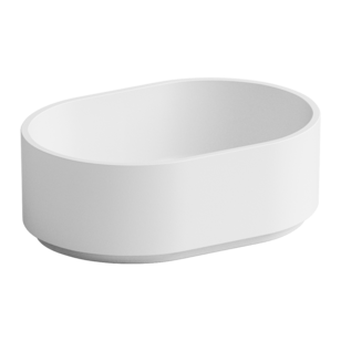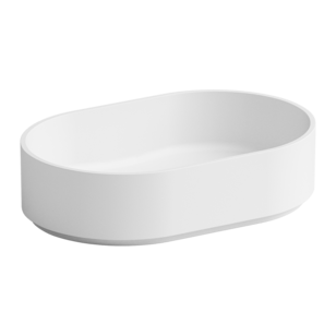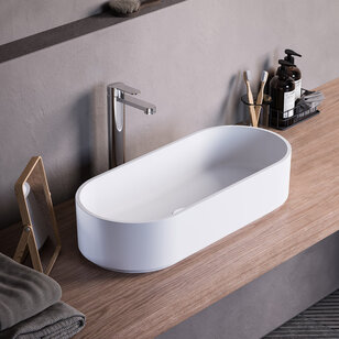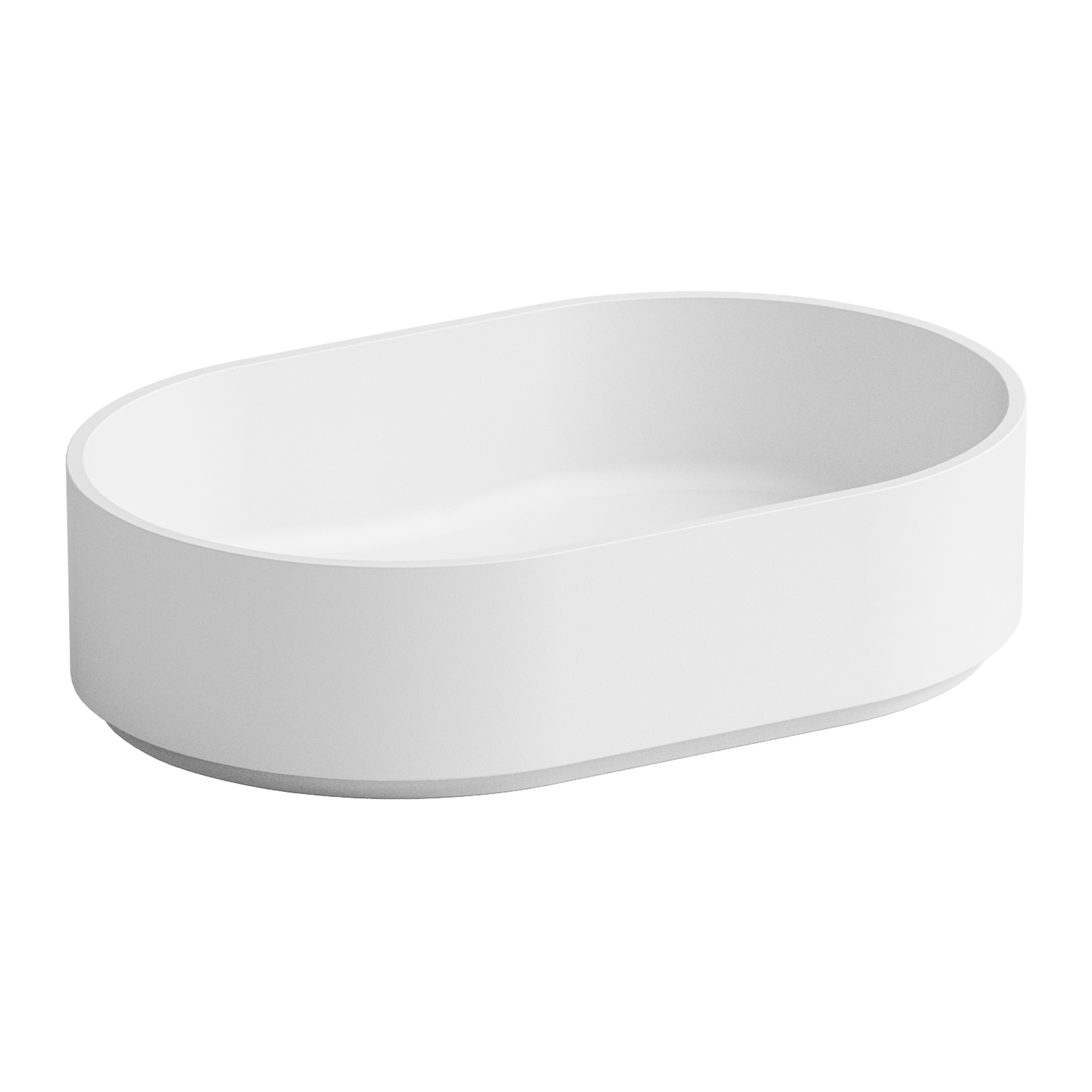 Countertop oval washbasin in matt colored Mineralmarmo or in matt white Solid Surface, with possibility of external Colour finish, glossy or matt.