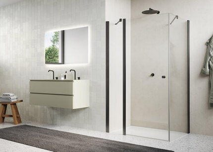 SOLINO SOL13+SOLT1 - Porte pivotante et paroi fixe en ligne + Paroi fixe