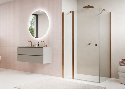 Porte pivotante et paroi fixe à 90° - ouverture extérieure