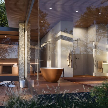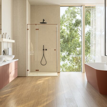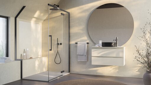 Toutes les couleurs de profilés peuvent être harmonieusement associées aux receveurs de douche, robinetteries, meubles de salle de bains, baignoires et à tous les autres éléments de salle de bains et de bien-être, soulignant ainsi l’approche design globale de RONAL Bathrooms.