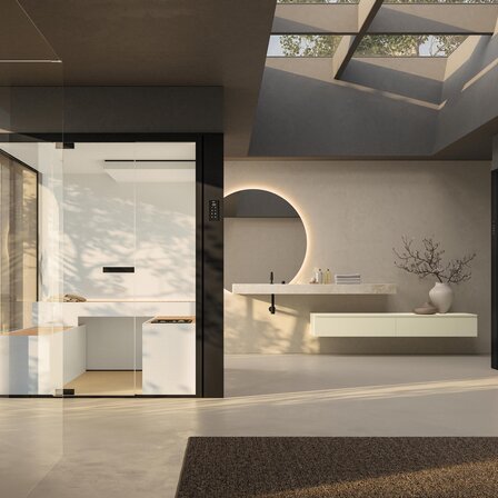Une transparence maximale grâce à de grandes surfaces vitrées, des profilés métalliques fins aux finitions élégantes et une poignée minimaliste définissent le langage design clair et contemporain de la série semi-frameless ORIANA.