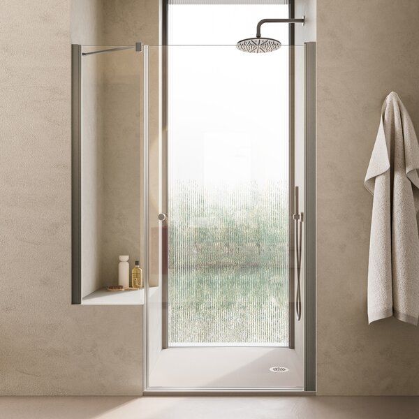 Solution sur mesure avec paroi fixe raccourcie intégrant un espace de rangement.