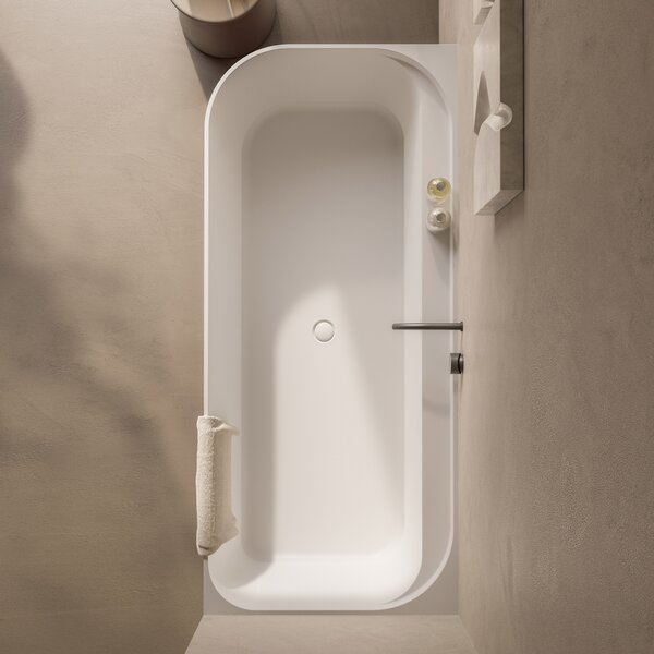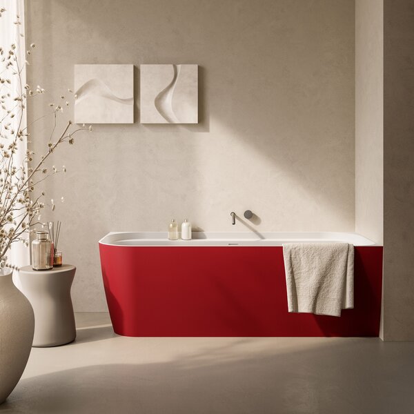 La nouvelle baignoire design ANTIGUA est personnalisée avec une finition extérieure en couleur RAL (3009 mat), en harmonie avec le meuble APTO.