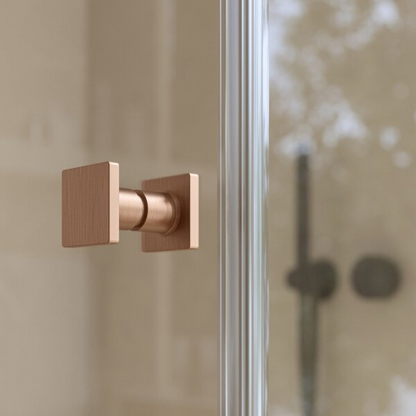 De vierkante greep van de ANNEA-douche in de aantrekkelijke geborstelde koperafwerking biedt een strak design en optimale grip.